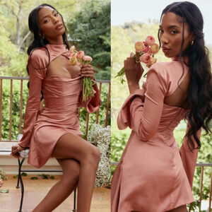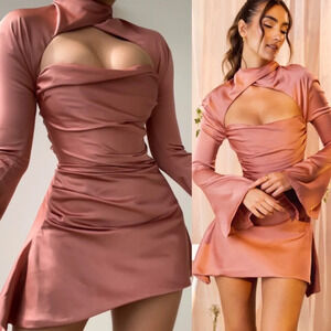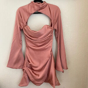 HOUSE OF CB Toira Satin Corset Mini dress in Rose pink size small NWOT