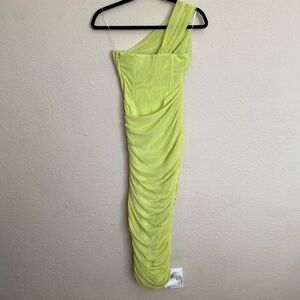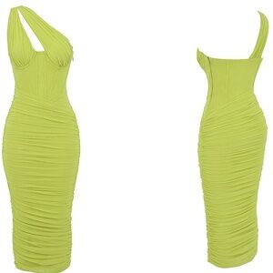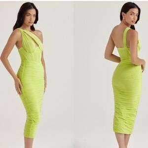 HOUSE OF CB 'Valentina'Lime neon Asymmetric Cutout Midi Dress/Size XS plus cup
