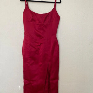 HOUSE OF CB XL PLUS CUP 'Casimira' Wine Satin Corset Midi Dress NWOT