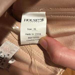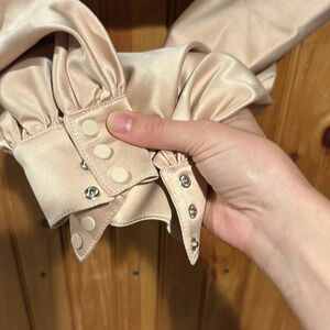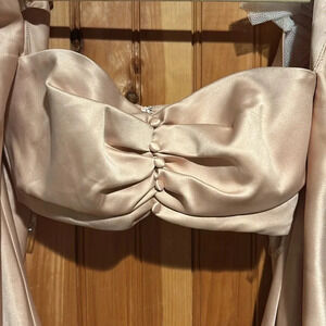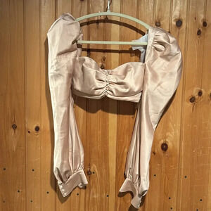 House of CB Jana crop long sleeve top. Sweetheart neckline with buttons and zipper in back. Blush, rose gold color. No callouts to note. Stock photo added for reference from the website.