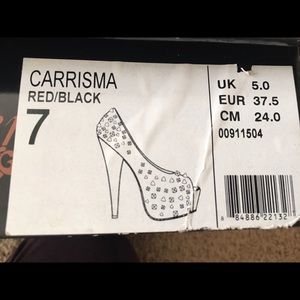 HOUSE OF DEREON "CARRISMA" BLACK/RED SPIKE HEELS