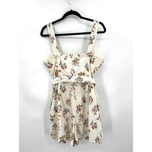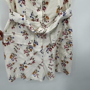 HOUSE OF HARLOW 1960 Beige Pink Floral Linen Button Up Belted Romper Size 12
