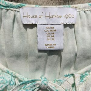 HOUSE OF HARLOW 1960 Boho Chic Paisley Green & Gold Flowing Mini Dress, Size M