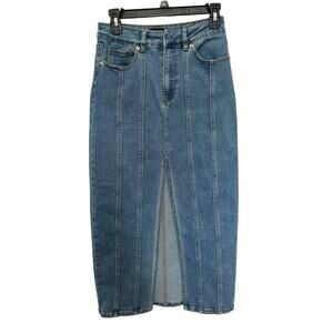 HOUSE OF HARLOW 1960 Midi Denim Skirt Front Slit STRETCHY Size 4