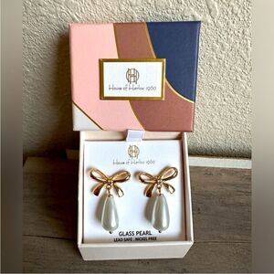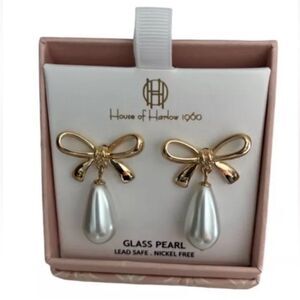 Classy and Elegant Dainty Look With Gold Bow and Pearl Drop House of Harlow Earrings New in Box