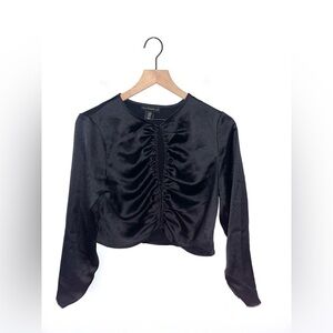 House of Harlow 1960 Revolve Black Satin Long Sleeve Blouse Top Size Medium