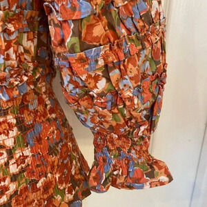 HOUSE OF HARLOW 1960 Ruffle Square Neck Smocked Top Long Sleeve Size Small