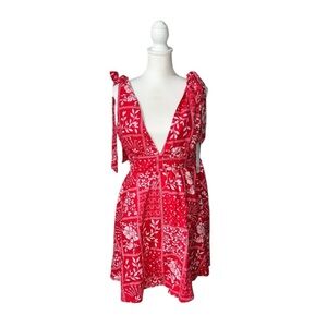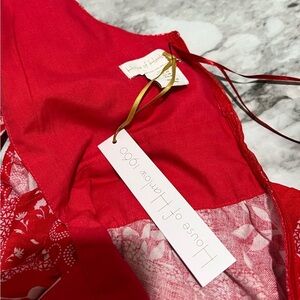 HOUSE OF HARLOW 1960 Sundress Floral Print Shoulder Tie Strap Red White linen M