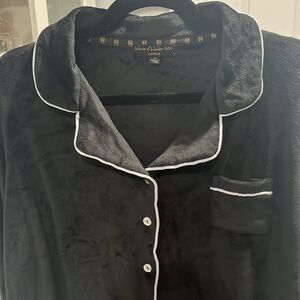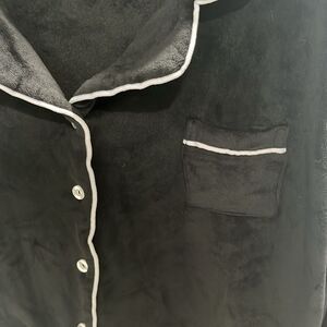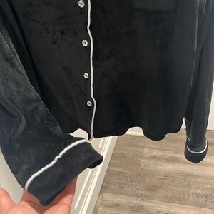 HOUSE OF HARLOW 1960 Velour 2 Piece Pajama Set, Black with White Pipping, Size L