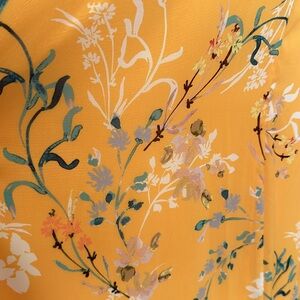 Sunny golden yellow with green white pink & lavender floral print.