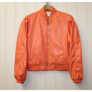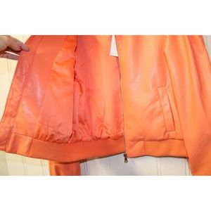 HOUSE OF HARLOW Bomber Jacket Living Coral Vegan Leather Size L Large