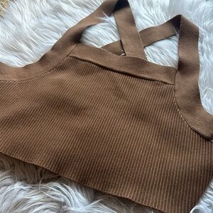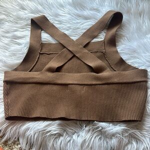 HOUSE OF HARLOW Cross Brown Crop Compression Knit Top