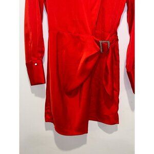 HOUSE OF HARLOW Front Rhinestone Buckle Satin Wrap 35" Mini Dress in Red XS
