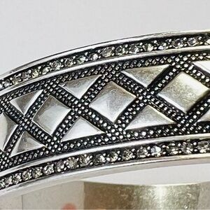 HOUSE OF HARLOW SILVER OXIDIZED BANGLE BRACELET PAVÉ CRYSTALS NWT