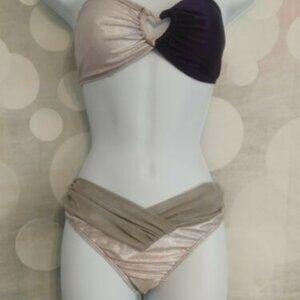 This bikini is tagged size medium, but It's more like a small or XS (or just an extremely sexy medium). Beautiful prismatic fabric, heart in the middle. Used/vintage condition. Worn maybe one time.