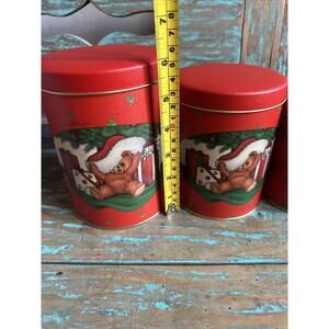 HOUSE OF LLOYD 1988 Nesting Tin 3pc Canister Set Teddy Bear Christmas Presents