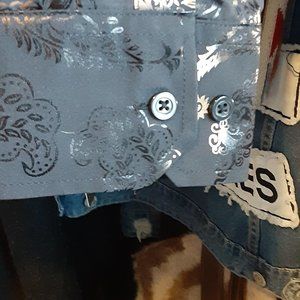 SO COOL AND FESTIVE THEIS BLACK AND GOLD BUTTON DOWN SHIRT LOOK LIKE A VAGES DREAM FROM OUR BOUTIQUE GLITZ 180 DANIELSON PIKE SCITUATE RI 02857