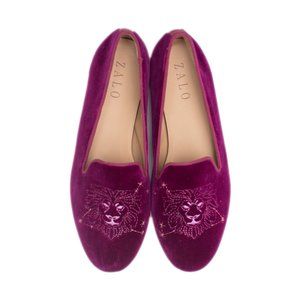 HOUSE OF ZALO ‘Leo’ Velvet Smoking Slippers in Bougainvillea