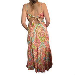 HOUSE OF HARLOW 1960 Colorful Print Sleeveless Buttons Up Pockets Maxi Dress