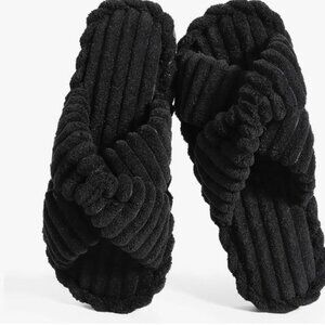 HOUSE SPA SLIPPERS FAUX FUR SLIPPERS , CROSS BANDS ANTI-SKID SOLE