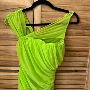 HOUSE of CB Neon Green Adrie Gathered Ruched Corset Cut-out Mini Dress.