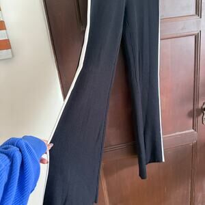 HOUSE of HARLOW 1960 | Black Rib Knit Flare Pants with White Stripe | Small