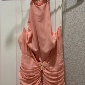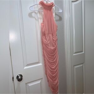 🍑HOUSE OF CB Merielle Pink Dress Halter Top High Neck Open Back Bodycon Small