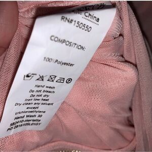 The label that is sewn onto the dress is still attached and intact, more like a peach color