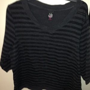 Gloria Vanderbilt sport mostly cotton blend like sweatshirt material in dark gray & black stripes, 3/4 sleeves pullover. Bust 25" & length 27"; size 3XL worn once, comfy! Sleeve best color pic!!! πΊπ¦π