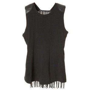 π₯HP 1/5π₯ Black Fringe Cutout Top w/ Shoulder Pad detail. New Old Stock XS S. Avant Garde Fashion Forward Sleeveless Round Neck Shirt w/ Faux Leather Shoulder Pads & Back Shredded Cage Cut Outs & Fringe. Cotton blend fabric with a bit of stretch. No Flaws, Stains, Scratches, Holes, Dirt, Tears, Rips. Smoke-free storage space. None other to note. Please some general wear in all secondhand pre-owned items as they have lived a previous life, so do not expect a mint item. Impeccable condition A.