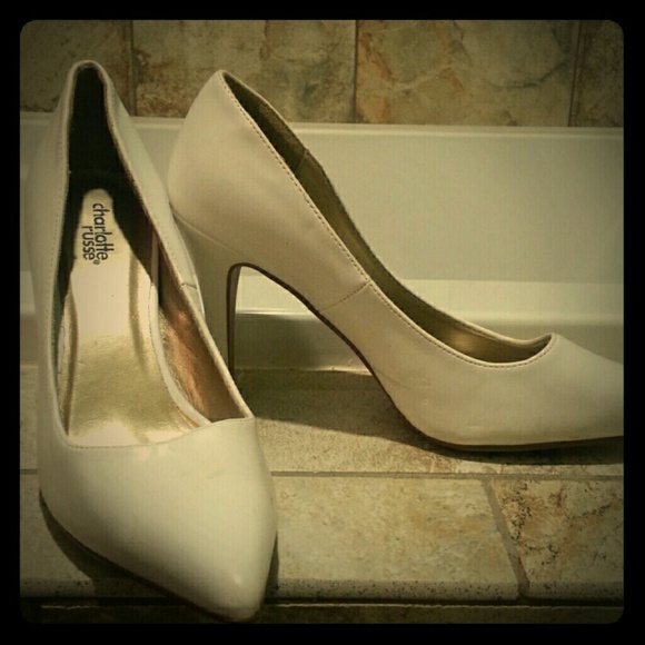 Charlotte Russe heels! White Pointed Toe! Very trendy! Size 8. Few small dings (shown in photo). Nothing too noticeable! Only tried on once, didn't work for what I needed! Get these while they are hot ladies!