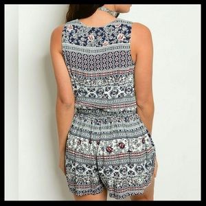 🅛🅐🅢🅣 🅞🅝🅔!!This Romper is so cute!! It's a dark blue multi colored print, smocked waist, surplice wrap front, sleeveless. Fully lined, 100% rayon. 3" inseam. Lightweight and perfect for summer! You will love it ♥️♥️