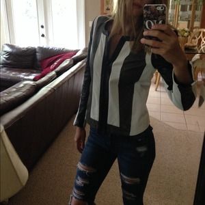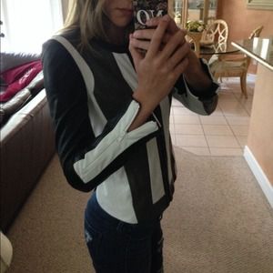 This is one of the most beautiful leather jackets I've ever bought from Saks. It is *NEW WITH TAGS* and never been worn. It is 100% pure lamb leather. The zipper details on the sleeve are absolutely perfect and it is super unique. The jacket is labelled as a Large but fits much more like a small. โ๏ธNO TRADESโ๏ธ
