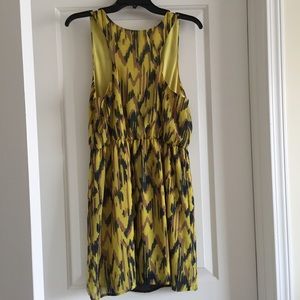 Bold and beautiful dress from Urban Outfitters (Staring at Stars). Lightweight and perfect for summer and/or layering. Fully lined chiffon featuring a racer-back. I absolutely love this dress. The colors remind me of those banana and fudge pops I used to get from the ice cream truck when I was a kid.😋Previously loved, but still a lot of life left in this one. Measures approximately 18" from armpit-to-armpit and 35" long from shoulder to bottom hem.
