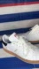 Upper: A white synthetic leather upper made in part with recycled materials.