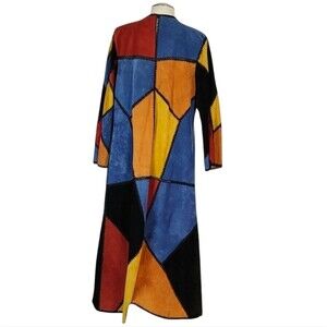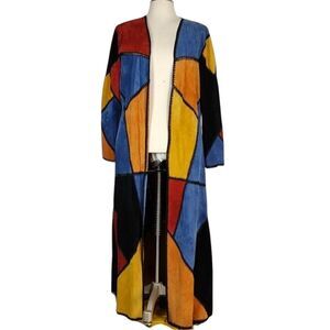 One-of-a-Kind Dyed Pig Suede Long Patchwork Colorblock Duster Jacket Coat Vtg by Adrienne Landau