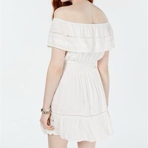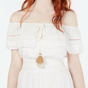 ✨HP✨ American Rag Off the Shoulder Boho Eyelet Tassled Mini Lined White Dress M