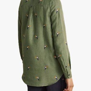 ❤️🎉HP🎉❤️ BODEN Toucan Bird Embroidered Linen Shirt, Olive, Size US 2P / …