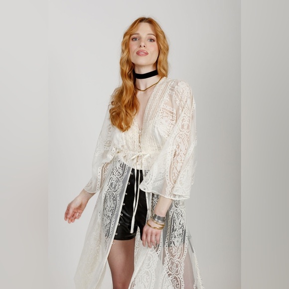 Band of the Free/ Band of Gypsy Cynthia Ivory Lace Duster/Kimono (NWT)