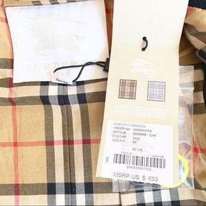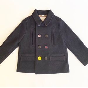 Amazing Burberry Pea Coat. Would be perfect for a boy OR a girl!! The buttons are unique and a mixture of the traditional Burberry buttons and fun printed buttons. This is a show stopper for the fall/winter season that will be here before we know it!!