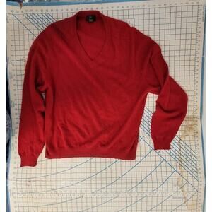 HP Club Room Red Cashmere Knit V Neck Men's Long Sleeve Sweater Top