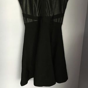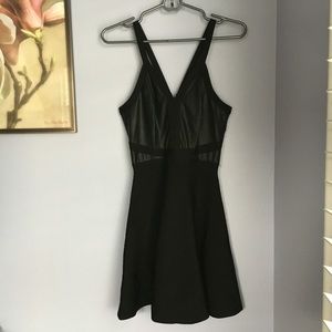 Flirty with an edge. Cool-girl party dress featuring strap-detailed faux leather bodice and flared jersey skirt. Hidden back zip closure. Partially lined. EUC ✨ Reasonable offers will be considered!