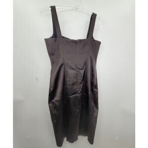 HP David Meister Satin Pleated Bodice Sleeveless Straight Midi Cocktail Dress