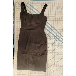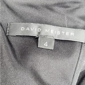 David Meister Black Satin Pleated Bodice Empire Waist Sleeveless Straight Body Contour Dress