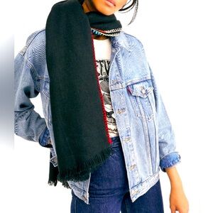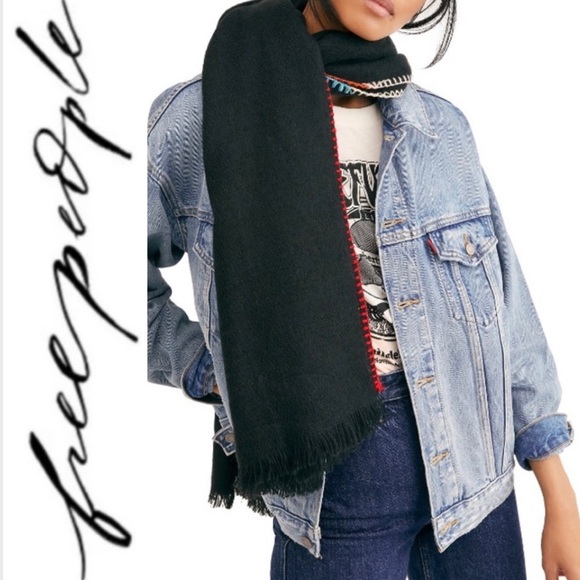 HP 🎉 FREE PEOPLE Common Thread Blanket Stitch Rectangle Scarf/Wrap in Black NWT