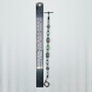 🎉HP🎉 Green Faceted Crystal & Antiqued Silver Tone Decorative Beaded Bracelet