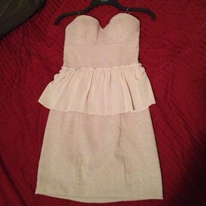 Grey Violetta Jacquard Peplum Dress Ladies Strapless Casual Party Wear. NWT. Size 8. Sophistication with above-knee length, sweetheart neckline, strapless and molded bra cups with underwire accentuating a great bosom for a flattering curve. Its fitting bodice, zip back closure and its peplum style flatters a feminine silhouette, achieves a miniature waistline and elongated body outline. Color: Grey/ Nude Beige. 97% polyester. 3% spandex. Smoke and pet free home. Excellent condition.