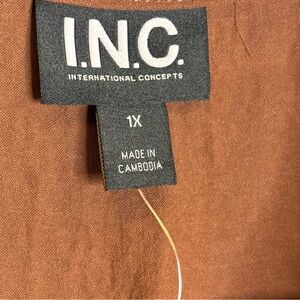 *NWT* brown INC International Concepts sleeveless tank top blouse in a plus size 1X. Features collar, gold button closure & 2 front pockets.