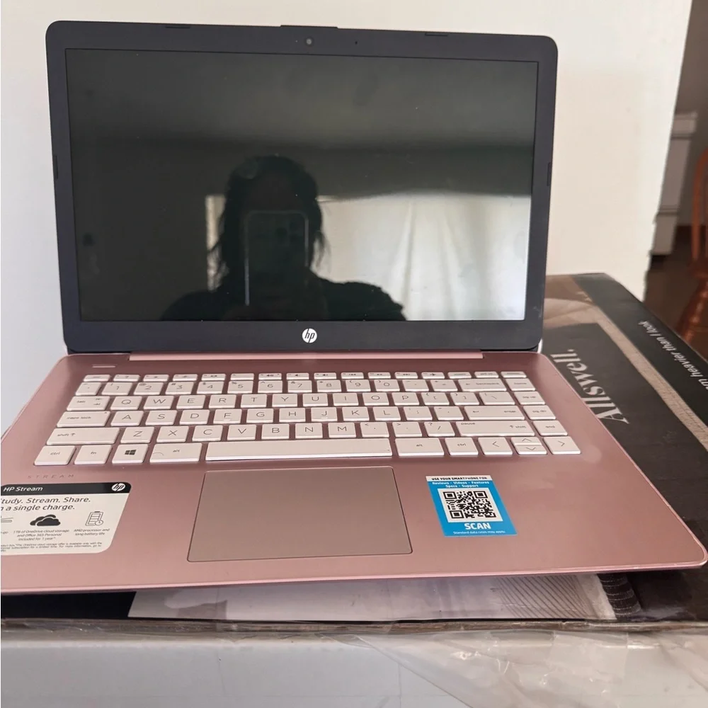 This cute lil pink laptop is great for schooll doing school workk or jobs applications it’s a HP and it’s in excellent condition comes withh a case and he case inside is soft but the out side case been in my closet