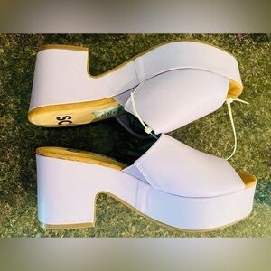 🌟HP🌟 LILAC LAVENDER Chunky Heel Mules Clogs Platform Summer Spring Picnic 90s